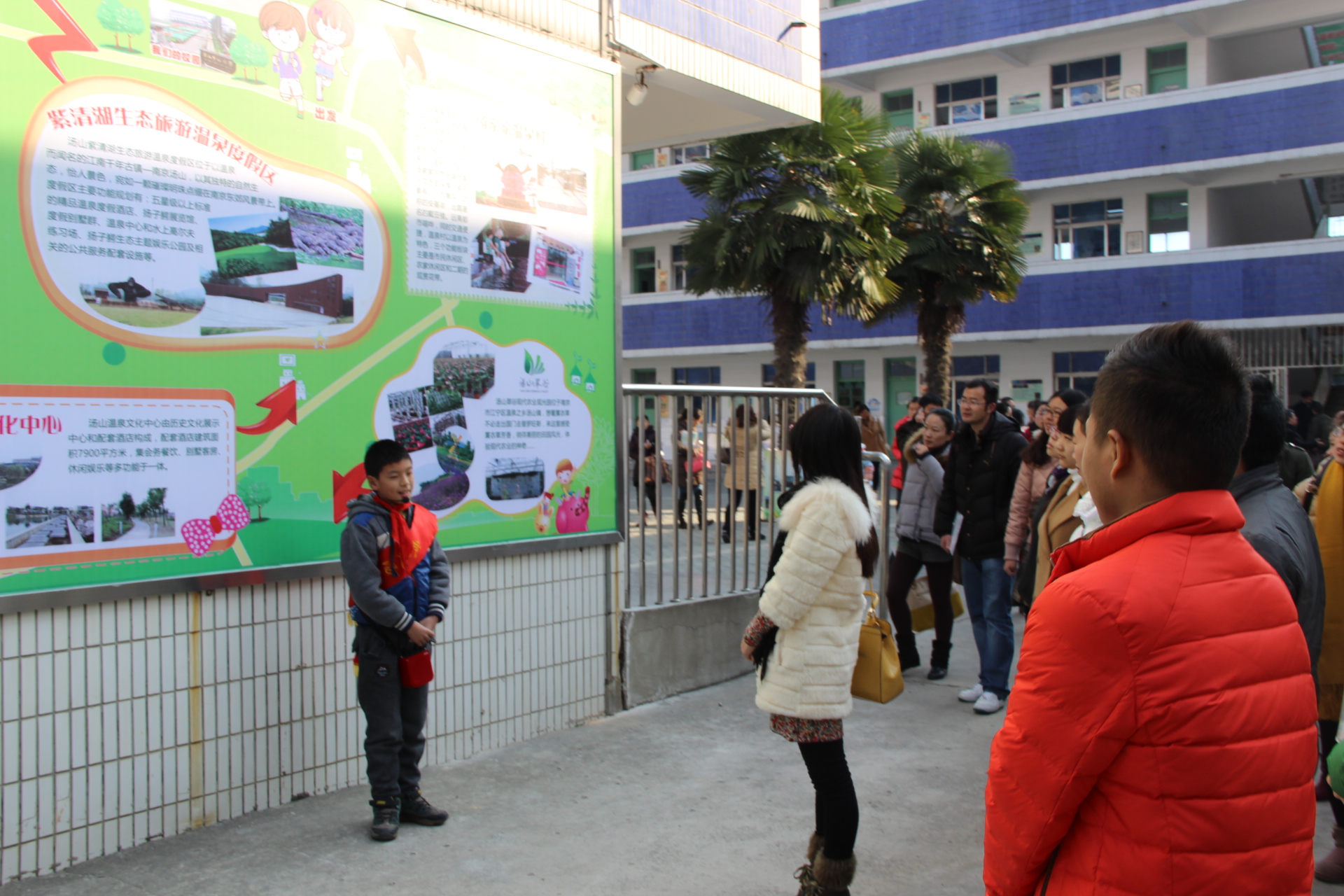 然后是观看学校录像,在小导游的带领下参观校园文化和班级文化,听课,就地分组研讨,听微型讲座《体验式班会课的设计与实施》,会议交流。