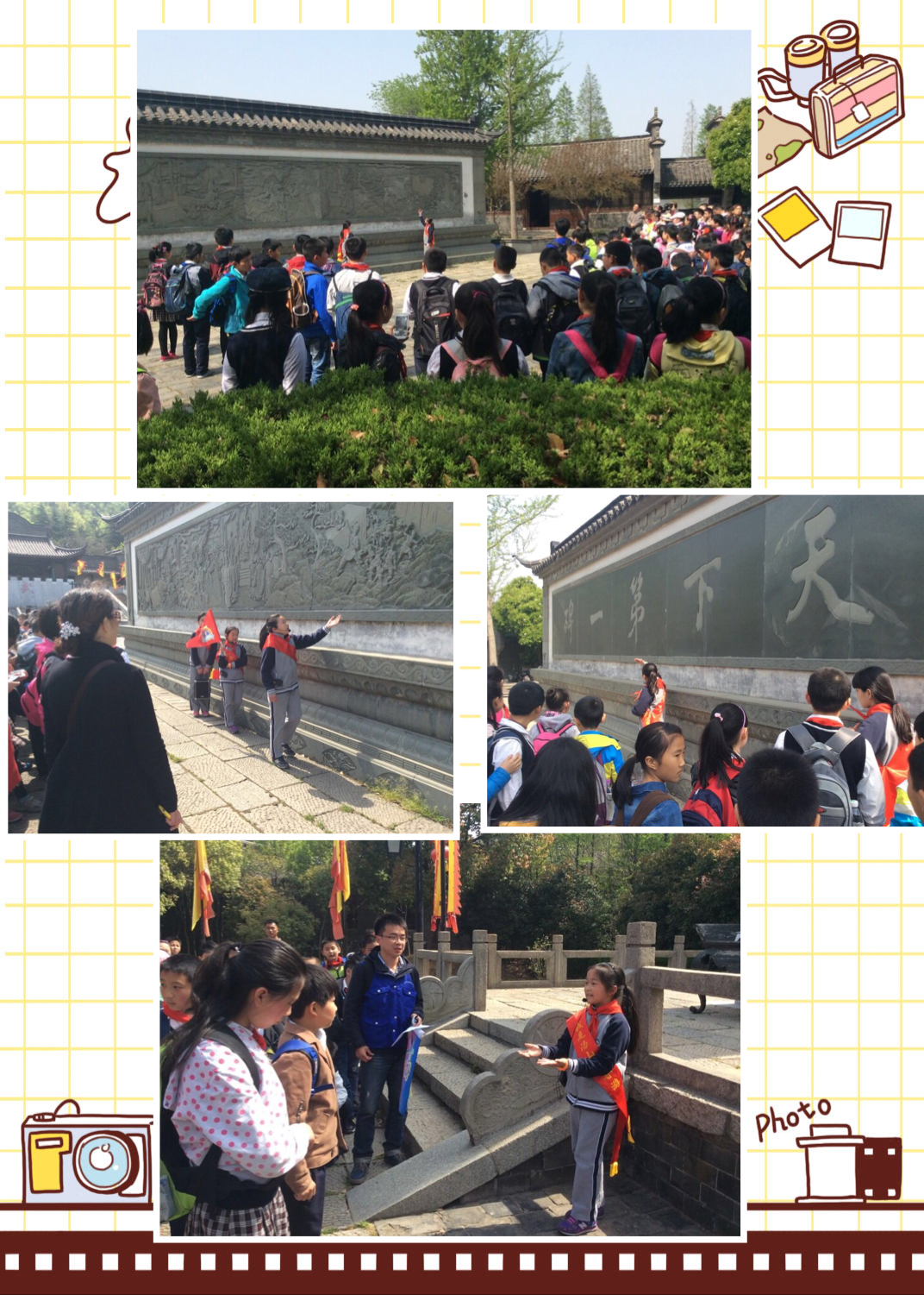 迎着和煦的春风,小导游们早早来到了汤山小学小导游实践活动基地——南京明文化村,迎接竹小师生们的到来。举世无双的阳山碑材留给了后人太多的疑问,听了小导游介绍的“阳山问碑”的由来后,师生们感受到了我国古代劳动人民的智慧与力量的伟大。接着,小导游将明文化村“天下第一碑”的大照壁所蕴含的丰富历史知识娓娓道来,将当时开凿碑材的历史背景原汁原味地还原出来。精彩纷呈的讲解,令来自竹小的同学们听得津津有味。小导游们出色的表现博得了师生们的一致好评,连景区内的大导游也不禁啧啧称赞。