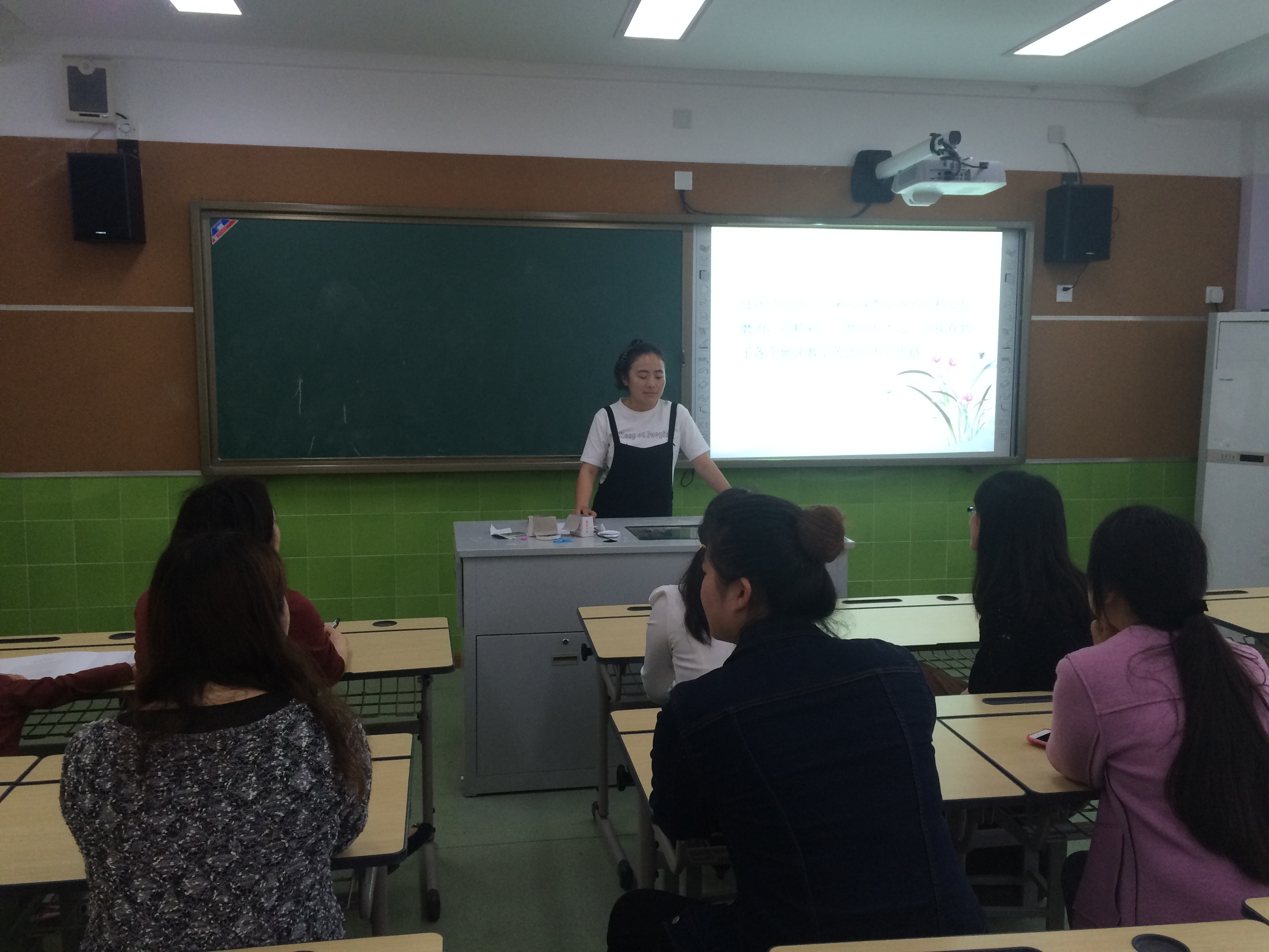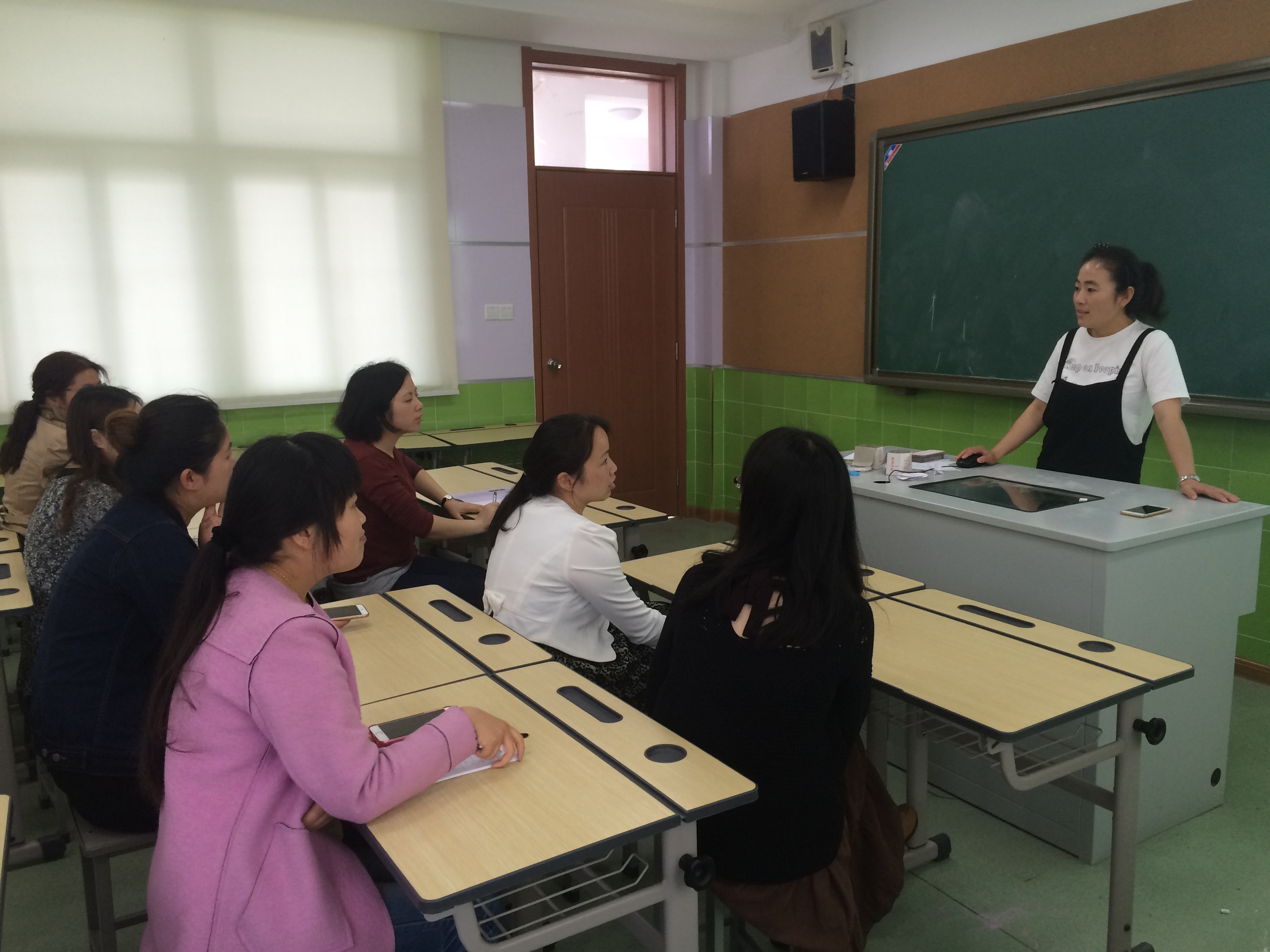 她从以下几个方面来进行:一、小学英语阅读教学的现状及存在的问题;二、汤山小学阅读教学现状;三、认读、朗读和阅读的区别;四、小学英语阅读教学的目的;五、怎样进行阅读教学;六、阅读教学的基本过程;七、阅读教学中应该注意的问题;八、适合小学生的阅读策略,兰老师的教学基本功扎实,有很多值得青年教师学习的地方,学习通过这次的学习,英语组的教师们对语篇阅读教学有了更深刻的认识。