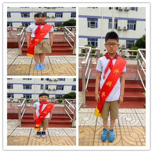汤山小学第十八周升旗仪式在学校操场如约举行。此次升旗手和护旗手是四(7)中队的王晶杰、兰静轩、葛铭凯三位同学。同时近三周又产生了数位致远卡的获得者,希望大家能向这些同学学习,早日获得致远卡。