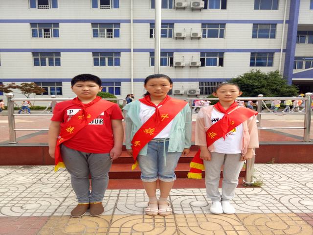 汤山小学新学期第十九周升旗仪式在学校操场如约举行。此次升旗手和护旗手是六(1)中队的葛秀京、吴鑫蕊、张以洋三位同学。同时上周又产生了数位致远卡的获得者,希望大家能向这些同学学习,早日获得致远卡。