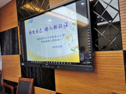 2019年8月28日南师附中江宁分校汤山小学在校会议室召开了2019年度新教师入职工作会议。会议以“新教师转变角色,踏入新征程”为主题,对新入职教师进行了新教师寄语、初入职经验分享、教学“五认真”的准备、多媒体的使用等相关入职培训。此次会议旨在号召全体新教师努力提高教师专业化水平和教育教学能力,为南师附中江宁分校汤山小学的教育发展作出新的更大的贡献。