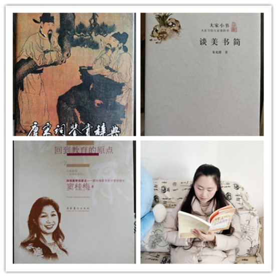 老师们纷纷把放在案头的图书拿出来,有尘封已久的诗词赏析,有耐人寻味名家经典,有充实专业的随笔和课例;有文艺类书籍,有专业类书籍,这些以前都是利用碎片化的时间去读的,如今能有充裕的时间让自己徜徉在书海中,真是惬意的事情。