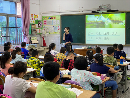钱雨涵老师执教二(8)班《小毛虫》,钱老师带来了一篇极富童趣的课文,她将学习的重点放在引导学生认真读课文上,让学生边读边思,通过与文本的对话、与老师、伙伴间的交流来理解一些关键词、句,增强对文章的感悟。字词教学选择了集中识字,充分利用了形声字的特点帮助学生识字,识字教学非常踏实。