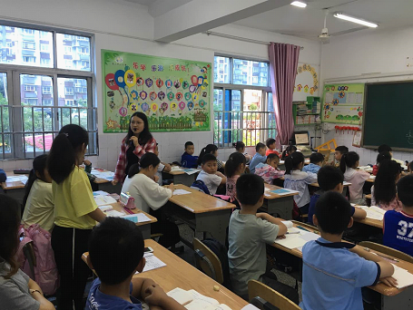 周学兰老师执教二(1)班《青蛙卖泥塘》,在教学过程中,她时刻注意以情境、朗读和富有感染力的教学语言来煽动学生的感情,教师的范读给学生一个很好的示范,能引导学生用多种形式朗读,让学生在读中学。另外,周老师渗透了字义教学,学生词语读音掌握较好。最后,利用即兴表演调动学生积极性,让课堂效果达到升华。