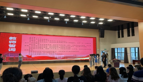 8月30日,南师附中江宁分校汤山小学就引导全体教师加强师德师风建设,在庄严的《南京市教师中小学教师誓词》的宣誓声中,这滚烫而充满感染力的誓词重现了一段激情燃烧的岁月,再次提醒着我们重温“学高为师,身正为范”的准则,再次提醒着我们谨守职业道德——“爱国守法、爱岗敬业、关爱学生、教书育人、为人师表、终身学习”。