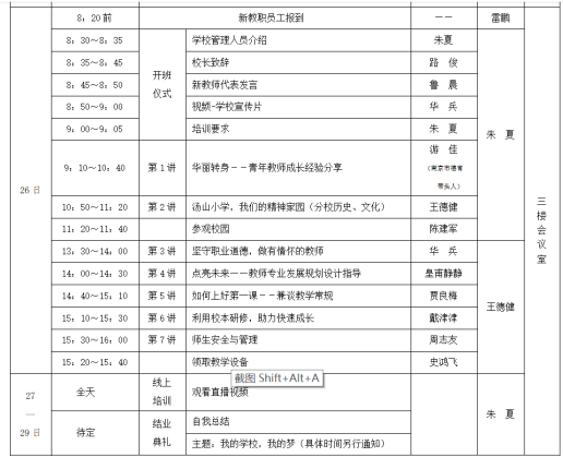 新手蹒跚起步,汤小倾心守护。8月26日—28日,为帮助新教师尽快熟悉学校的各项工作,加快融入集体的步伐,汤山小学认真举办新教师培训活动,经验分享、主题讲座、互动交流……缤纷多彩的活动安排,像一缕清风,缓缓吹散迷雾。