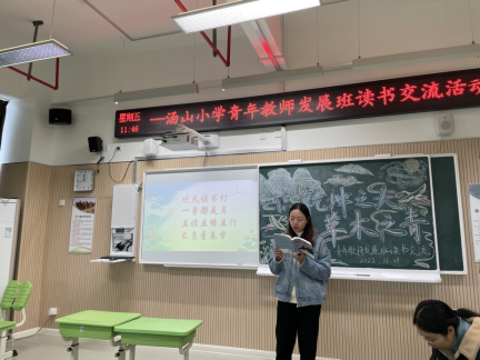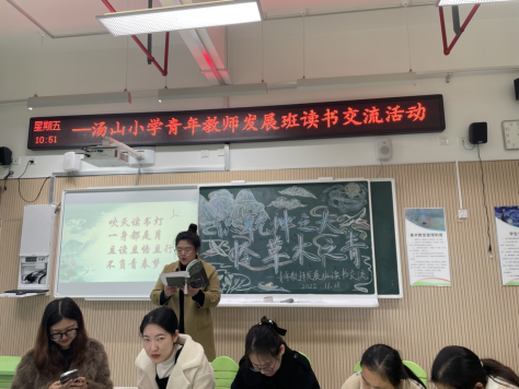 书页之间跳跃着的情怀与智慧,历经岁月磋磨不减其色,每每翻开,便是开启一片新的天地,徜徉其间,我们遍识乾坤之大,怜惜草木之青,或感动或沉思,总有收获。11月18日上午,汤山小学青年发展班举办青年教师读书交流活动。
