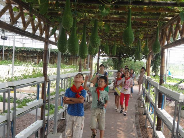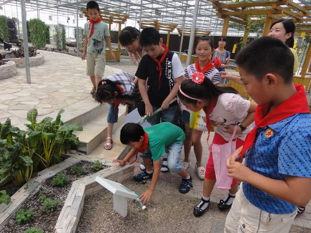 带着愉快的心情,队员们来到了以“科技,承载农业未来”主题的汤山翠谷农业科技园。在这片多姿多彩的大园子里,队员们参观了现代农业创意馆。“咦,这是什么?”在一株像被霜冻坏了的植物前,大家驻足观看。善于观察的小队长赵明明看到了这株植物的介绍,原来,它叫“雾凇”,颜色怪异的它可是有很多要用功效的。之后,更多惊奇的发现不断地出现在队员们的视线里,“一帘幽梦”、紫背天葵、奇特瓠子、多彩番茄、“碰碰香”、高效果园……队员们直呼大开眼界。最让大家称奇的是这些植物的生长环境和栽培方式。热心的讲解员告诉大家,翠谷现代农业创意馆汇集了立柱栽培、管式栽培、岩棉栽培等多种高效栽培模式,这些先进的栽培模式展现了高科技现代化的农业生产方式。