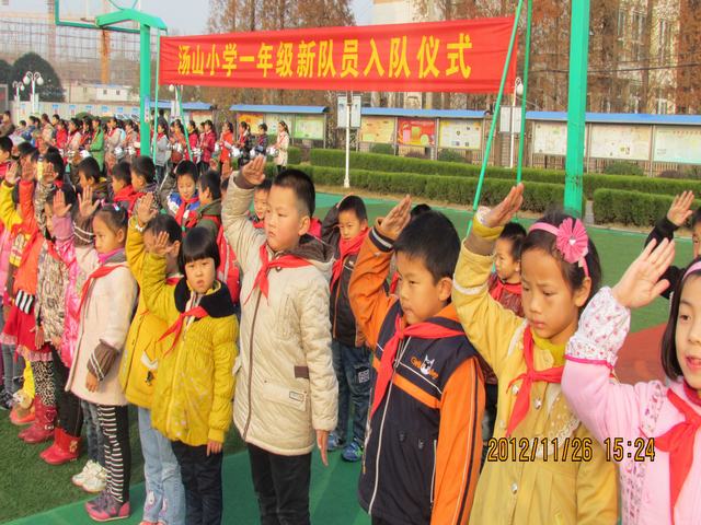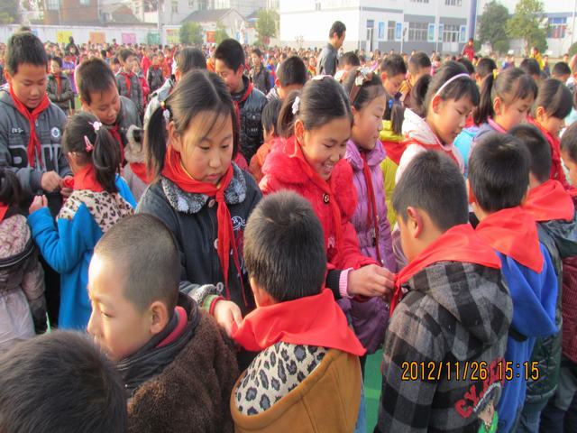 午后的校园,锣鼓喧天、红旗飘扬,一年级的235名新队员们怀着激动的心情参加了入队仪式,戴上了鲜艳的红领巾。随后,新老队员在队旗下共同宣誓要好好学习、好好锻炼,时刻准备着为共产主义事业奉献力量!大队辅导员解老师为新队员们送上了诚挚的祝贺,并希望他们要佩戴和爱护红领巾,用自己的实际行动回报父母老师,为红领巾增光添彩。