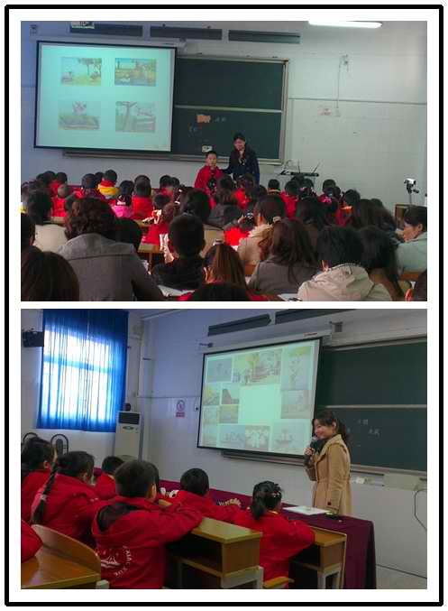 摄山星城小学邵云凤老师执教了绘本《森林里的聚会》,邵老师让学生充当各种小动物,学生在有趣的故事中享受到绘本带来的乐趣。我校的朱蓥老师执教绘本《爷爷一定有办法》,将绘本阅读与识字、口语练习紧密联系起来,充分发挥了绘本的功能。摄山星城小学的王晶晶老师执教《小猪闹闹》,老师用充满童趣的朗读把孩子带到了童话世界。我校的解维丽老师执教绘本《好朋友》,在感受纯真友爱的同时,挖掘学生身边的资源,进行写的引导和训练。