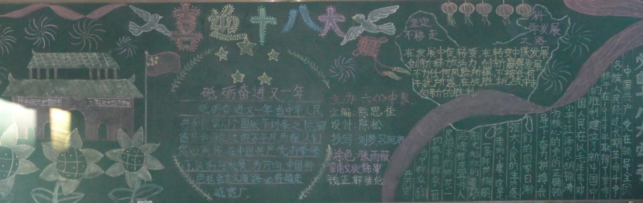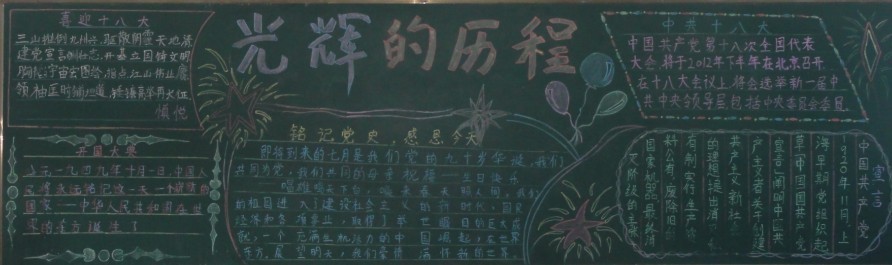 经过学校大队部的宣传发动,在辅导员老师的指导下,队员们动手查找资料,精心设计版面,认真描绘插图,用朴实而生动的文字记录党的光辉历程,在规定时间内优质高效地完成了黑板报制作,涌现出了许多主题突出、内容丰富、设计精美、书写美观、图文并茂的优秀板报。