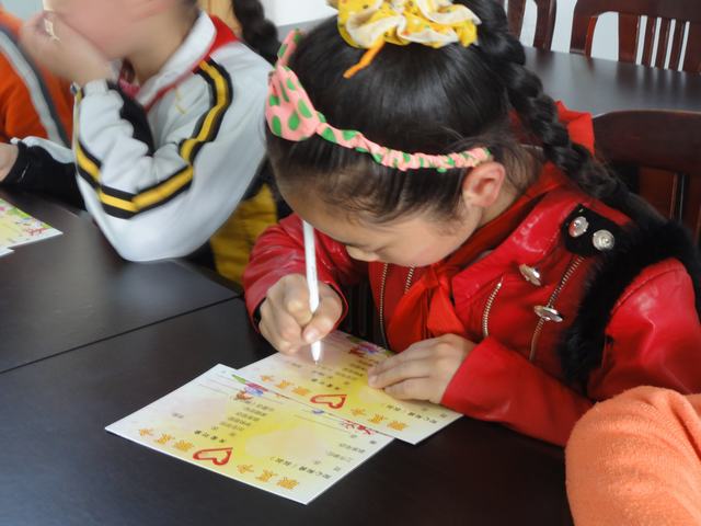 活动中,老师们首先认真聆听、了解了7名留守儿童的微心愿。孩子们的小心愿让在场的老师们十分感动:想看一册图书、买一套色彩齐全的蜡笔,想和家人去水魔方玩一次……因为父母长期不在身边,所以小小的心愿也不能实现。接着,老师们分组认领了孩子们的心愿,并与结对的孩子签订了结对帮扶关爱卡,表示要尽自己的力量,帮助孩子们完成心愿。结对仪式后,老师们还为这些孩子提前送上了亲手准备的“六一”礼物,为他们送上了美好的祝福。孩子们也将感激之情化为一张张小小的贺卡,送给了关心他们的叔叔阿姨。