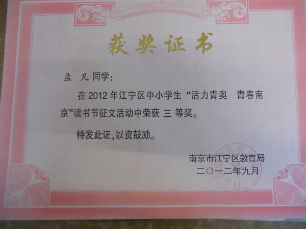 江宁区书香少年——孟凡