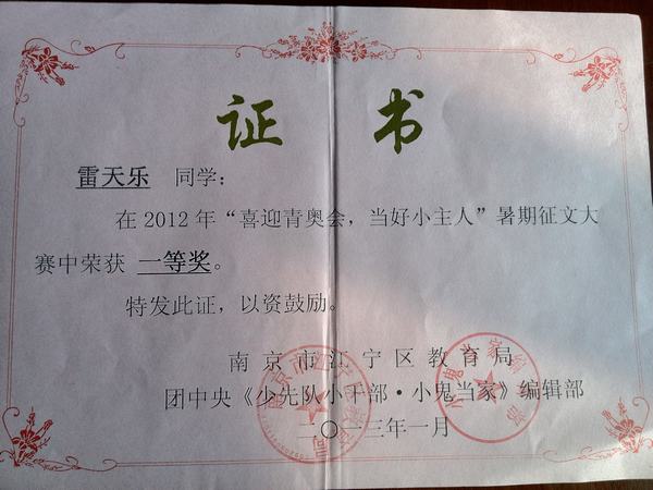 我是一名四年级的小男生,听了我名字你们不禁会猜测我的性格否是活泼开朗吧?没错,我人如其名,快乐的学习、生活!这就是简简单单的我。 我有许多爱好,如:唱歌、运动、绘画等等,其中,爱读书也是之中一个。从小妈妈就给我买了很多书籍,至今为止我记忆犹深的是《巴巴的故事》、《神奇校车》、《卡梅拉》、《鼹鼠的故事》等。我从书籍中学到许多知识,我知道书里的知识像海洋一样多,需要我慢慢学习、吸收。有空的时候,我就会捧上一本书,津津有味地看起来。因为课外书,我的课余生活更加多姿多彩了,我从书中拓展了视野,还从书中找到了学习的榜样! 我在读书中进步,在读书中成长,也在读书中收获着!在学校组织的读书征文中,我积极参加着,在老师的指导下,我的努力中,也收获了许多证书。如:2010年区级“数学与生活”中荣获二等奖、2011年区级感恩贺卡寄递活动中荣获三等奖、2012年的区级暑期征文中荣获一等奖、“活力青奥征文中荣获区二等奖、2013年的作文还刊登在报纸上呢!
